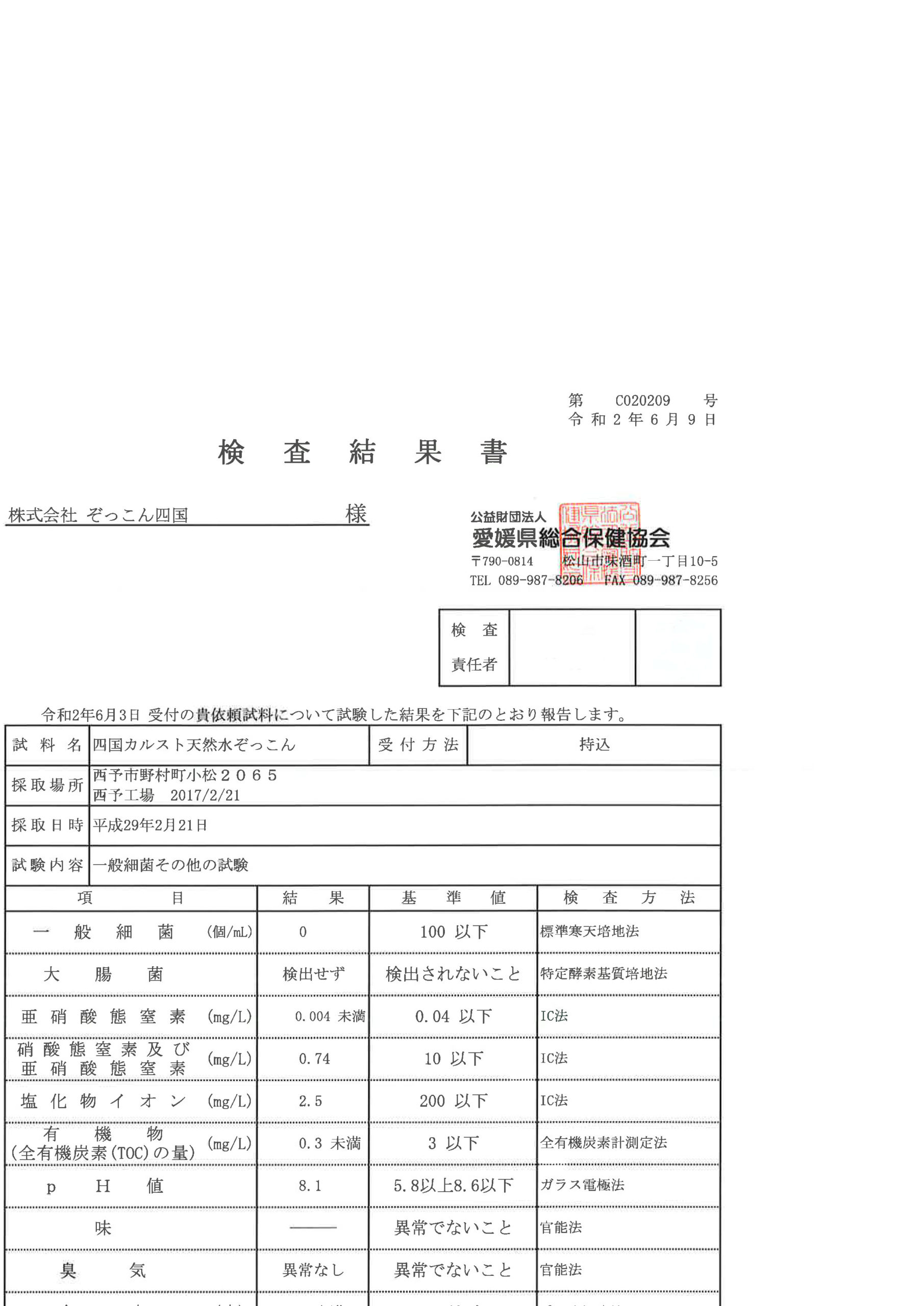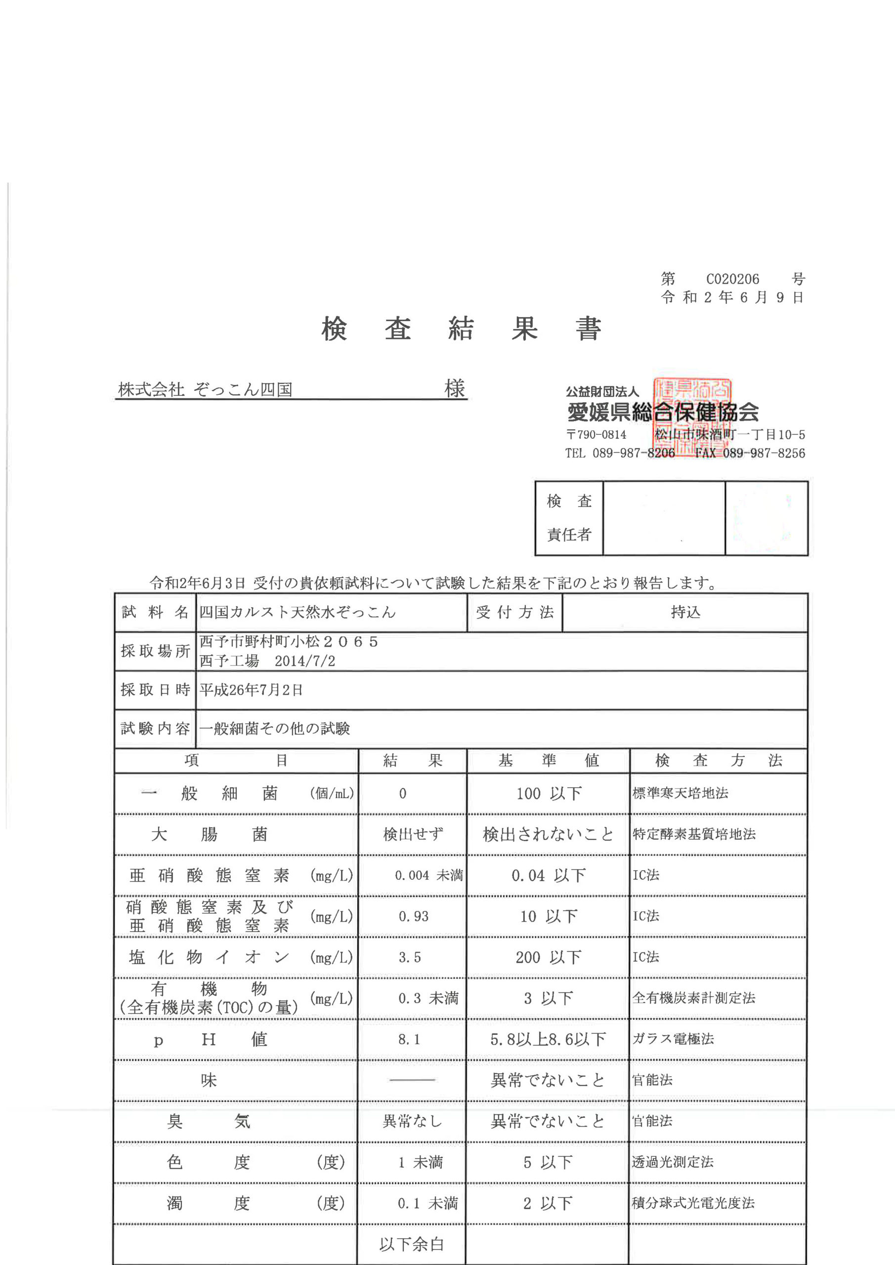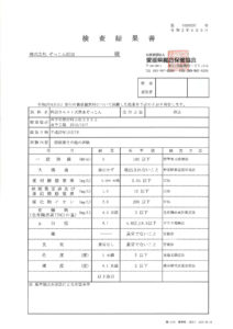 下記に、画像と検査結果書を掲載いたします。