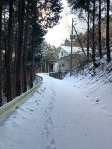 四国カルスト付近の、自然を感じる場所にあるぞっこん水の採水工場は例年通りの雪模様。